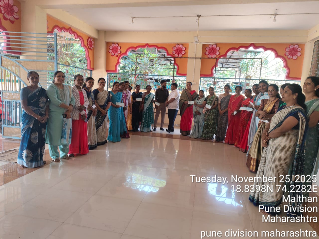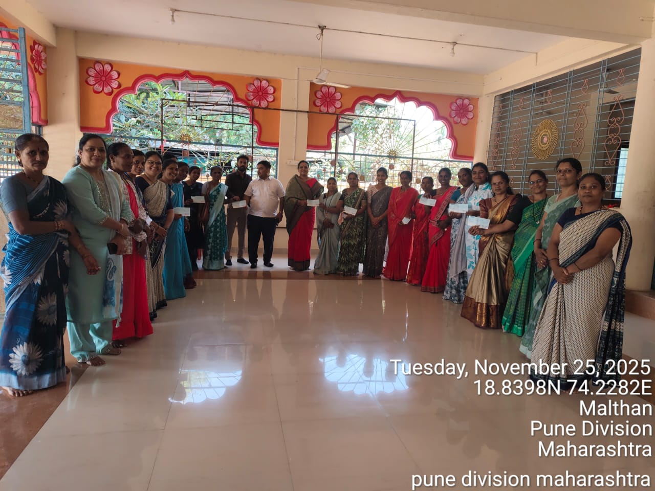 November 26, 2025 - In Goverment By webadmin Comment off यशस्वी व तेजस्वी ग्राम संघांतर्गत 15 गटांना सीआयएफ निधीचे वितरण आज मलठण येथे यशस्वी व तेजस्वी ग्राम संघ अंतर्गत 15 गटांना सीआयएफ निधीचे वितरण करण्यात आले नऊ लाख रुपये निधी वितरित करण्यात आला Previous ॲनिमिया मुक्त गाव अभियानांतर्गत आरोग्य तपासणी शिबिराचे आयोजन Next मलठण येथे ‘माझे अस्तित्व–शक्ती’ एकल महिला विशेष शिबिरास उत्स्फूर्त प्रतिसाद