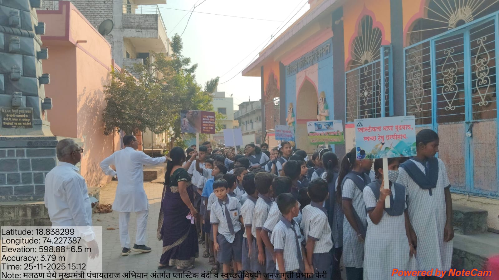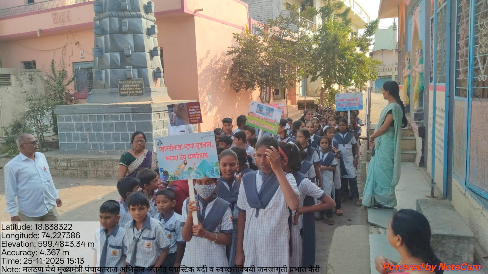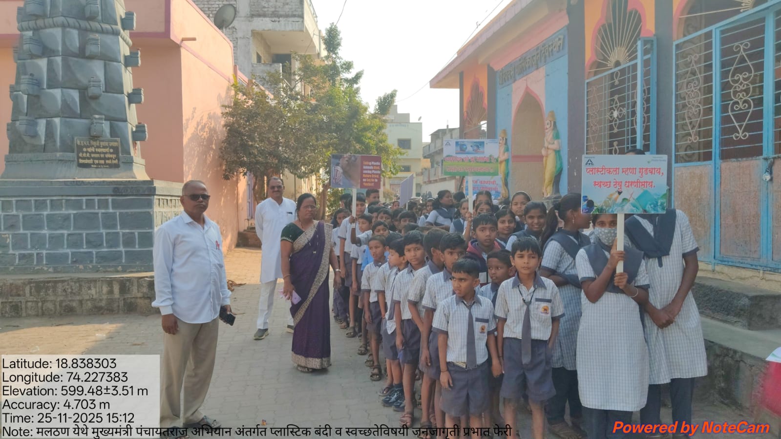 आज दिनांक 25/11/2025 रोजी दुपारी तीन वाजता न्यू इंग्लिश स्कूल मलठण जिल्हा परिषद प्राथमिक शाळा मलठण व ग्रामस्थ प्लास्टिक बंदी जनजागृती विषय प्रभात फेरी काढण्यात आले व पथनाट्य सादर करण्यात आले